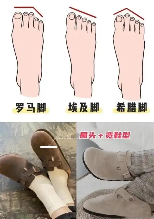 每个人的脚长得不一样,分别为罗马脚、埃及脚、希腊脚,但是这种脚型只要你穿上圆头加宽鞋型的“勃肯鞋”都能轻松驾驭穿出高级感。