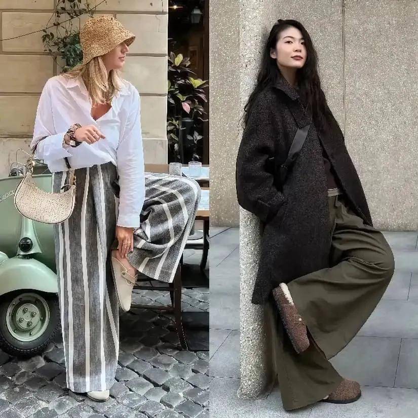 对于普通大众可能有胯宽腿粗这样的身材小缺点,选择阔腿裤来穿搭最能遮肉显瘦,这也是为何推荐大家选择用勃肯鞋搭配阔腿裤的原因之一。