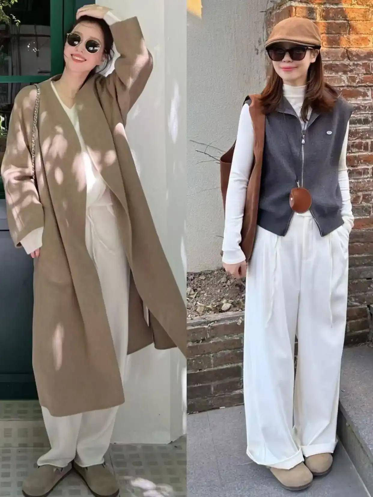 想要自己的穿衣打扮造型比较精致时尚,面料是很关键的。同样是白色的裤子,右边的这一条皱皱巴巴的,穿在身上就会显得廉价,但是左边的这一条西装裤,面料挺阔有型上身效果就很提升气质。