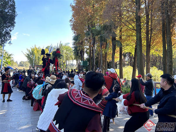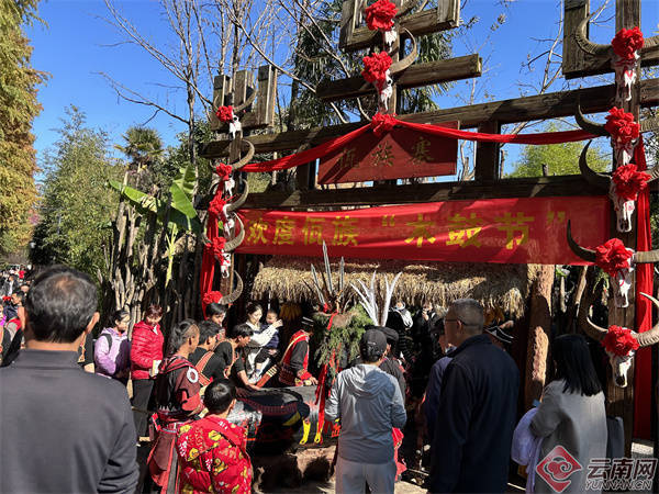 “木鼓节期间,我们准备了千人拉木鼓、击鼓迎新祈福、拴红绳、摸牛头迎好运等丰富活动,其中‘梳头情话’环节尤其受年轻游客喜爱。佤族人民不仅有豪放的一面,也有温柔浪漫的情感表达。”云南民族村佤族青年艾荣介绍,元旦以来游客数量众多,大家热情参与各项活动,脸上洋溢着灿烂笑容。艾荣还向大家发出邀请:“欢迎来自全国各地的朋友,来到佤族村寨和我们共度木鼓节,感受佤族文化的魅力,迎接红红火火的新一年!”